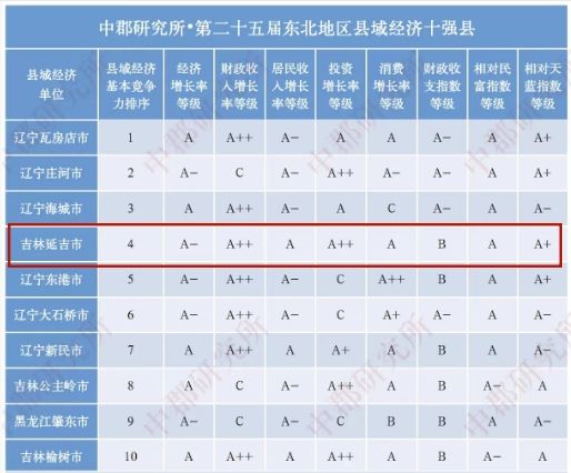 11月11日,全國(guó)縣域經(jīng)濟(jì)專業(yè)研究機(jī)構(gòu)——中郡研究所完成并發(fā)布了《第二十五屆縣域經(jīng)濟(jì)與縣域發(fā)展研究報(bào)告》,揭曉第二十五屆東北地區(qū)縣域經(jīng)濟(jì)基本競(jìng)爭(zhēng)力十強(qiáng)縣。其中,吉林省延吉市連續(xù)25年持續(xù)位居?xùn)|北十強(qiáng)縣,排名始終位列吉林第一。