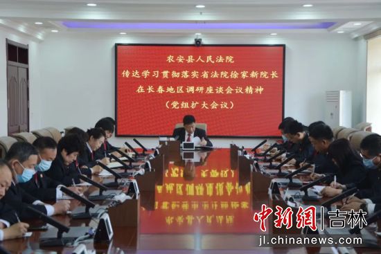 中新網(wǎng)吉林新聞5月22日電 (譚偉旗 高子超)近日,農(nóng)安縣人民法院召開黨組會(huì)、黨組(擴(kuò)大)會(huì)議、府院聯(lián)動(dòng)會(huì)議,傳達(dá)部署省市法院重點(diǎn)工作,貫徹落實(shí)會(huì)議精神。