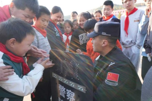 “叔叔,這個(gè)盾牌好漂亮啊,有啥作用呀?”“這個(gè)盾牌可以驅(qū)散壞人、抵擋襲擊、保護(hù)自身安全……”近日,在吉林省琿春市敬信鎮(zhèn)學(xué)校,圈河邊檢站的民警們?yōu)楹⒆觽兩狭艘惶糜腥さ木醚b備體驗(yàn)課。
