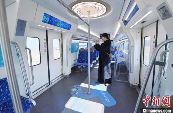 3月21日,全球首列氫能源市域列車在長春進(jìn)行時速160公里滿載運(yùn)行試驗。圖為列車車廂內(nèi)部。中新社記者 張瑤 攝