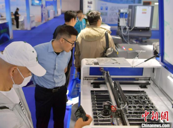 6月10日,在2025長(zhǎng)春國(guó)際光電博覽會(huì)上,參觀者體驗(yàn)用激光設(shè)備打印工藝品。