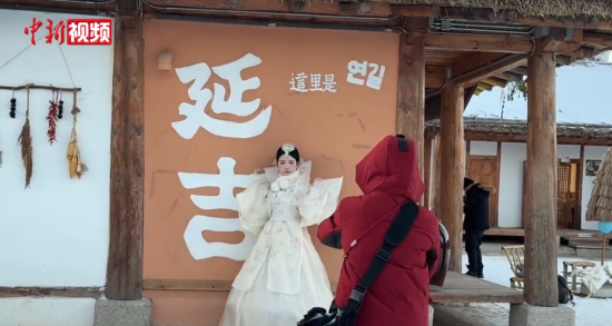 雪落吉林延吉朝鮮族民俗園 游客旅拍熱度不減