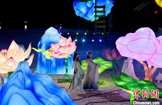 2025年1月1日晚,游客在位于吉林長(zhǎng)春的長(zhǎng)影世紀(jì)城欣賞花燈。當(dāng)天,長(zhǎng)影世紀(jì)城內(nèi)超百組炫彩花燈同時(shí)點(diǎn)亮,營(yíng)造出一個(gè)夢(mèng)幻般的璀璨世界,為新年的到來增添喜慶氣氛。中新社記者 張瑤 攝