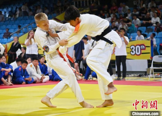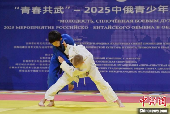 6月15日,“青春共武·中俄青少年武術(shù)交流活動(dòng)” 在長(zhǎng)春市體育館拉開帷幕。賽場(chǎng)上,來自俄羅斯柔術(shù)協(xié)會(huì)的140 名成員與長(zhǎng)春市業(yè)余體育運(yùn)動(dòng)學(xué)校的 100 名學(xué)生輪番登臺(tái),展開激烈競(jìng)技。圖為俄羅斯青少年進(jìn)行柔術(shù)比賽。中新社記者 張瑤 攝