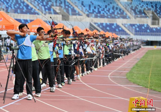 8月21日,吉林長春,運(yùn)動(dòng)員參加比賽。 當(dāng)日,2025年全國射箭U16、U18錦標(biāo)賽在長春開賽,中國各地96支射箭隊(duì)的721名運(yùn)動(dòng)員張弓搭箭,一較高下。 中新社記者 張瑤 攝