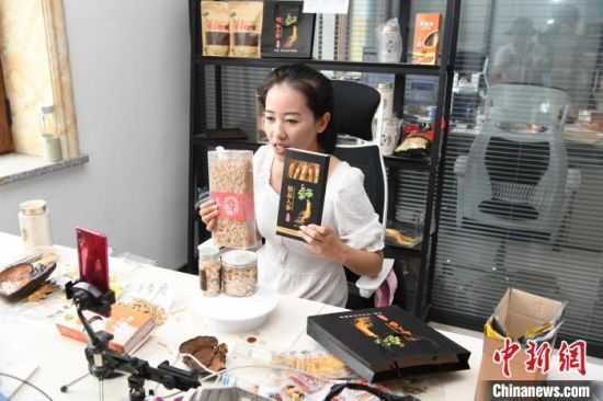 吉林參商正在網(wǎng)絡(luò)平臺(tái)直播銷(xiāo)售人參!埇 攝