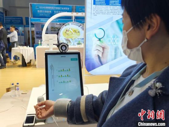 另一側(cè),一臺智能脈診儀器前參觀者眾多。只需將傳感器綁在手腕處,幾分鐘后,便可探知人體健康狀況。根據(jù)所得結(jié)果,系統(tǒng)會提出個體化健康指導(dǎo)方案和預(yù)防保健建議,規(guī)避潛在健康風(fēng)險。