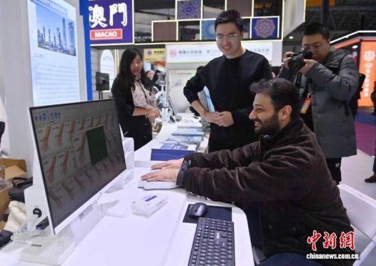 2025長春國際醫(yī)藥健康產(chǎn)業(yè)博覽會暨長白山人參產(chǎn)業(yè)高質量發(fā)展大會上,外國觀眾正在體驗中醫(yī)經(jīng)絡檢測儀。張瑤 攝